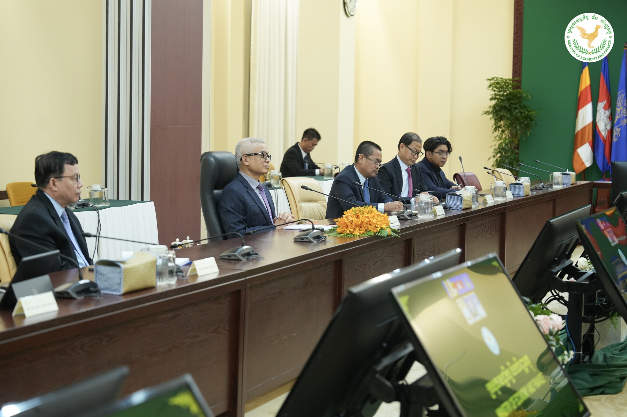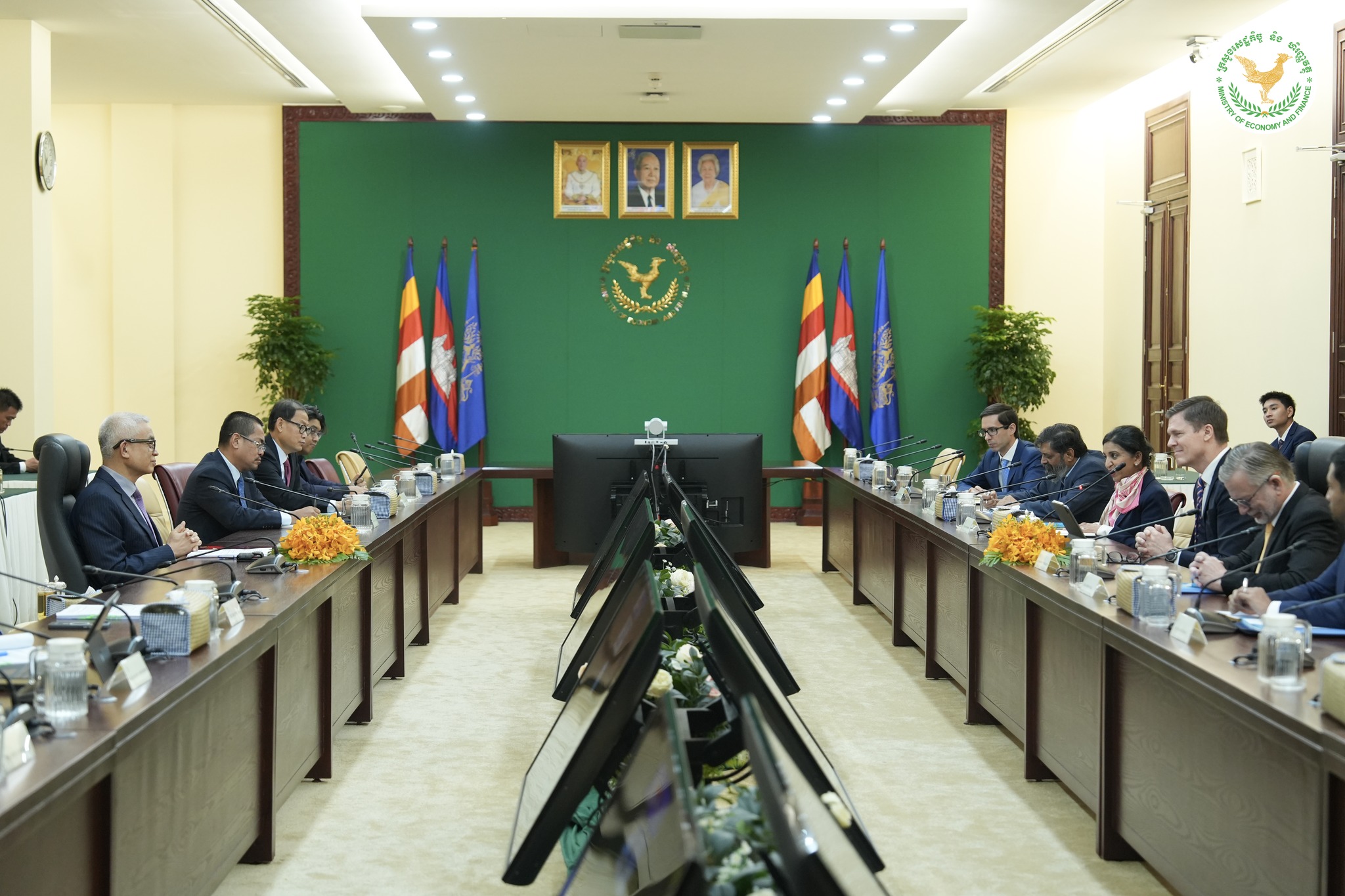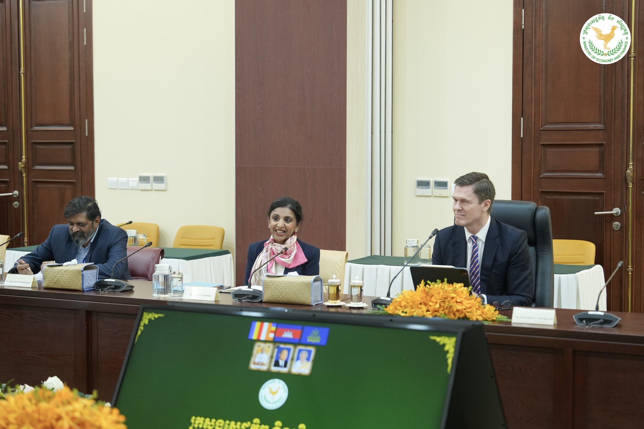 ជំនួបសម្ដែងការគួរសម រវាង ឯកឧត្តមអគ្គបណ្ឌិតសភាចារ្យ អូន ព័ន្ធមុនីរ័ត្ន ឧបនាយករដ្ឋមន្រ្តី រដ្ឋមន្រ្តីក្រសួងសេដ្ឋកិច្ចនិងហិរញ្ញវត្ថុ ជាមួយលោក វីនហ្វ្រែត វីកក្លែន (Winfried Wicklein) អគ្គនាយកនៃអគ្គនាយកដ្ឋានអាស៊ីអាគ្នេយ៍, ធនាគារអភិវឌ្ឍន៍អាស៊ី និង លោកស្រី យ៉ាសមីន ស៊ីឌីគី (Yasmin Siddiqi) នាយិកាស្ថានតំណាងធនាគារអភិវឌ្ឍន៍អាស៊ីប្រចាំកម្ពុជា